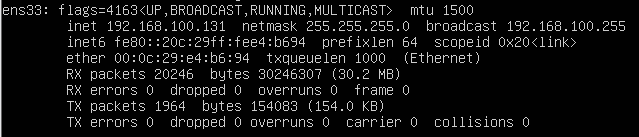 ens33의 inet 주소를 확인한다. 내 PC에서는 192.168.100.131로 잡혔다.