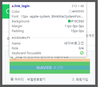 그랬더니 a.link_login이란 element 정보가 나왔습니다.
